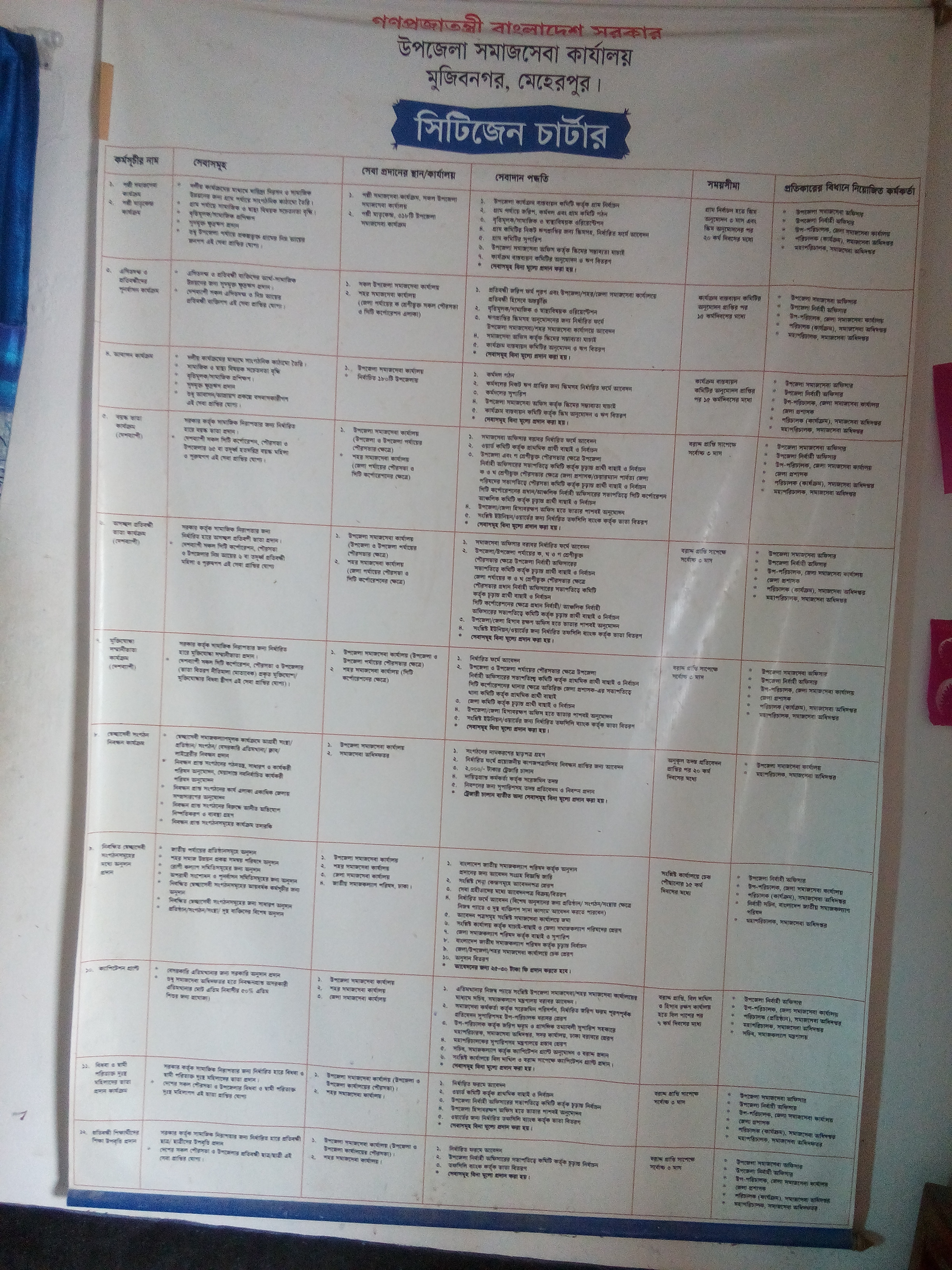 উপজেলা সমাজসেবা কার্যালয়, মুজিবনগর, মেহেরপুর এর সিটিজেন চার্টারের মাধ্যমে আপনি সহজেই জানতে পারবেন এদেশের একজন নাগরিক হিসেবে এ কার্যলয় থেকে কী কী সরকারি সেবা পাবেন।